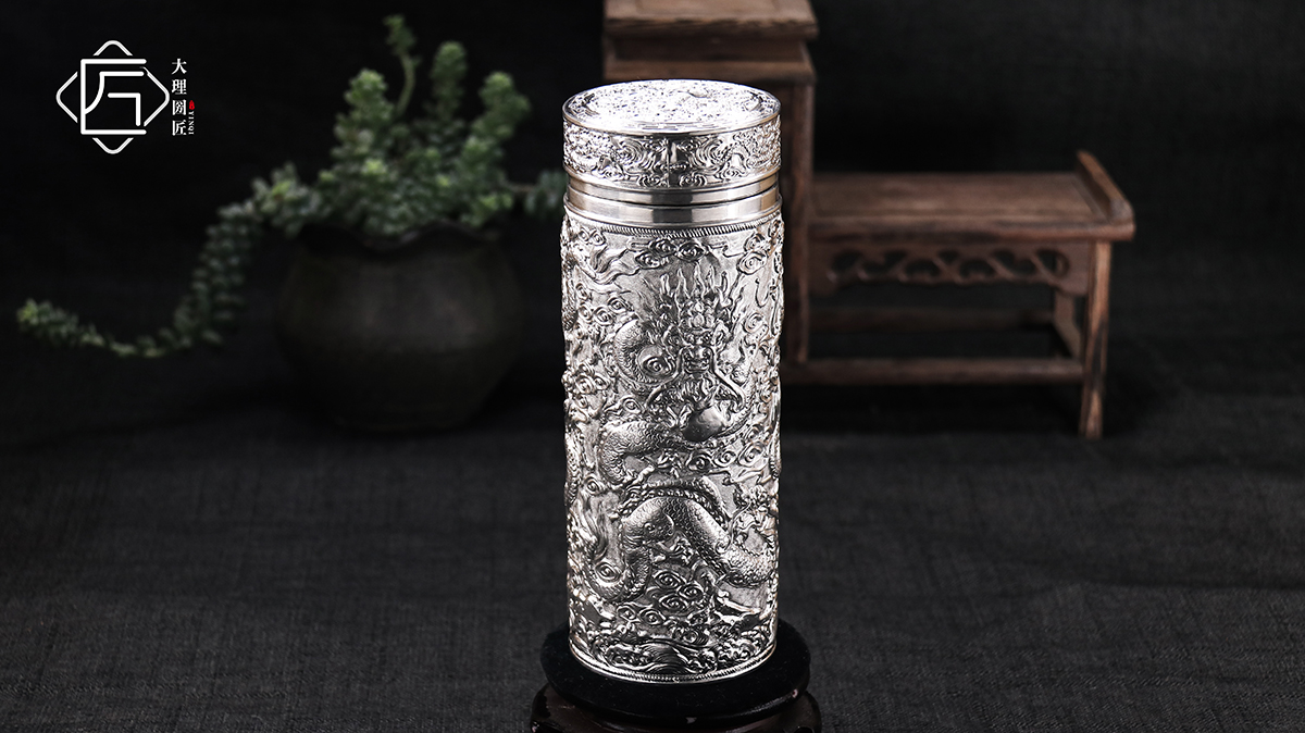 里外全银,上面錾刻了九条龙,代表着尊贵的地位。