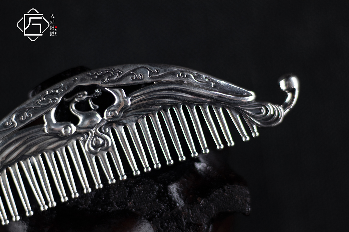 999雪花银制作,银梳子能够促进血液循环,除了梳头,也有着刮痧、脸部按摩等用途。